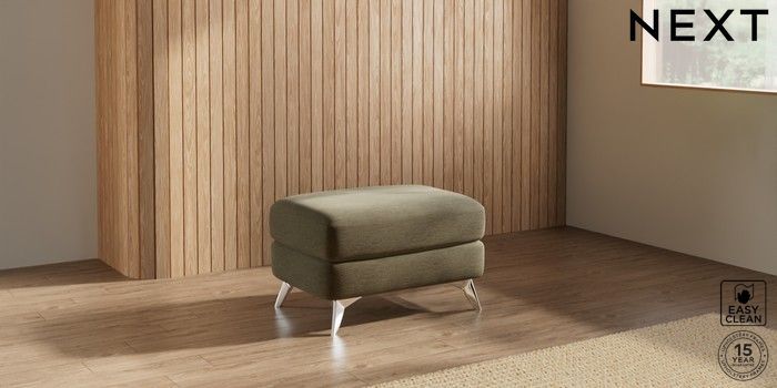 7.2.10 Buy Parker Footstool Fine Chenille Easy Clean Dark Moss Green High Metal - Chrome from the Next UK online shop Click here to use our accessible website