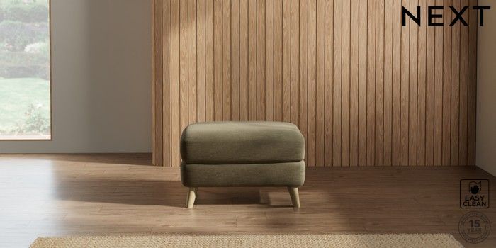7.2.5 Buy Parker Footstool Fine Chenille Easy Clean Dark Moss Green Low Retro Tapered - Light from the Next UK online shop Click here to use our accessible website