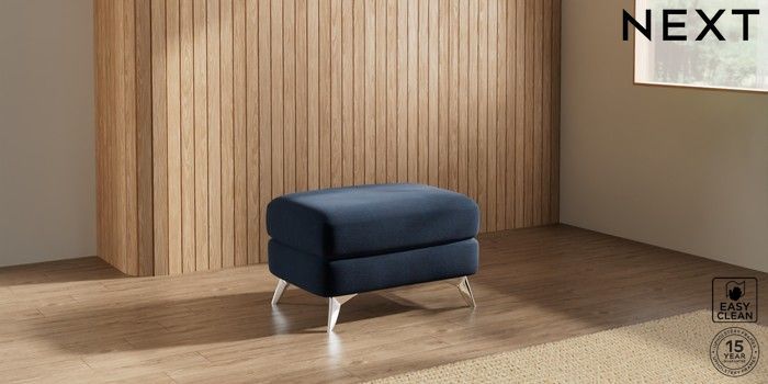 7.2.10 Buy Parker Footstool Fine Chenille Easy Clean Dark Navy Blue High Metal - Chrome from the Next UK online shop Click here to use our accessible website