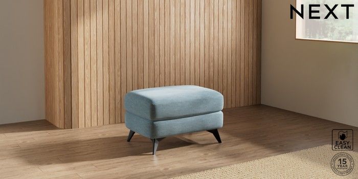 7.2.10 Buy Parker Footstool Fine Chenille Easy Clean Mid Blue High Metal - Black from the Next UK online shop Click here to use our accessible website