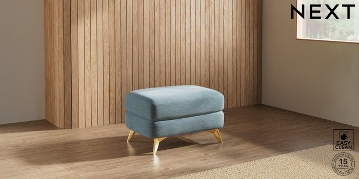 7.2.10 Buy Parker Footstool Fine Chenille Easy Clean Mid Blue High Metal - Brass from the Next UK online shop Click here to use our accessible website