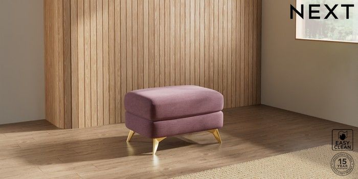7.3.1 Buy Parker Footstool Fine Chenille Easy Clean Mid Mulberry Purple High Metal - Brass from the Next UK online shop Click here to use our accessible website