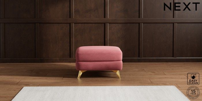 7.2.5 Buy Parker Footstool Fine Chenille Easy Clean Mid Pink High Metal - Brass from the Next UK online shop Click here to use our accessible website