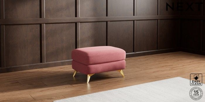 7.2.10 Buy Parker Footstool Fine Chenille Easy Clean Mid Pink High Metal - Brass from the Next UK online shop Click here to use our accessible website