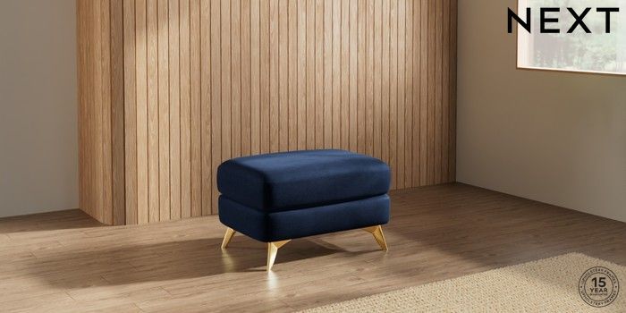 7.2.10 Buy Parker Footstool Luxe Chenille Navy Blue High Metal - Brass from the Next UK online shop Click here to use our accessible website