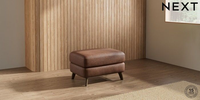 7.3.1 Buy Parker Footstool Monza Faux Leather Easy Clean Chestnut Brown Low Retro Tapered - Mid from the Next UK online shop Click here to use our accessible website