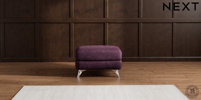 7.2.5 Buy Parker Footstool Plush Chenille Dark Plum Purple High Metal - Chrome from the Next UK online shop Click here to use our accessible website