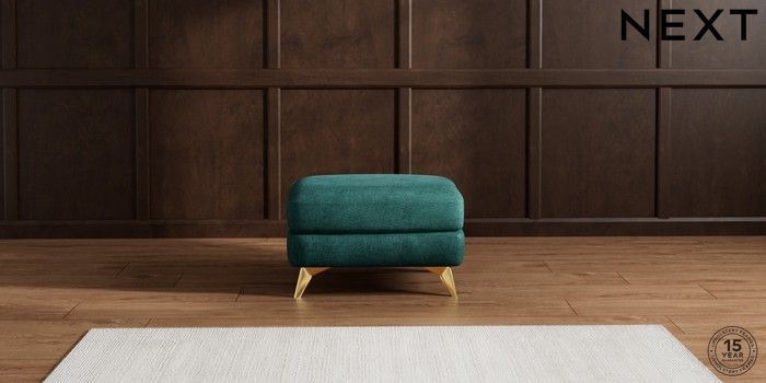 7.2.5 Buy Parker Footstool Plush Chenille Dark Teal Green High Metal - Brass from the Next UK online shop Click here to use our accessible website