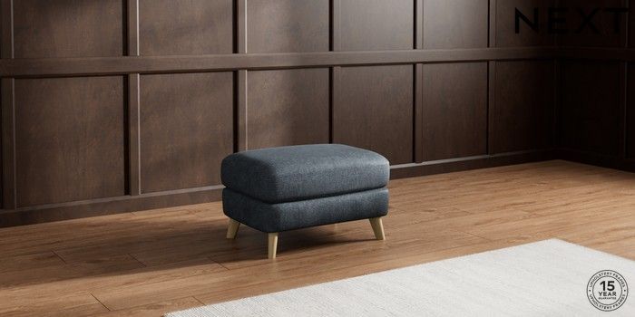 7.2.10 Buy Parker Footstool Plush Chenille Slate Blue Low Retro Tapered - Light from the Next UK online shop Click here to use our accessible website