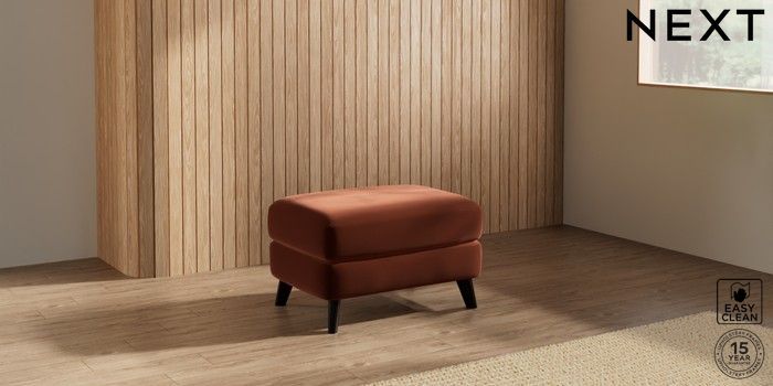7.3.1 Buy Parker Footstool Plush Velvet Easy Clean Ginger Orange Low Retro Tapered - Dark from the Next UK online shop Click here to use our accessible website