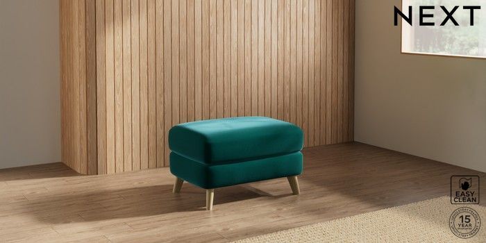 7.2.10 Buy Parker Footstool Plush Velvet Easy Clean Juniper Green Low Retro Tapered - Light from the Next UK online shop Click here to use our accessible website