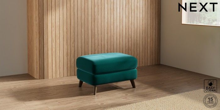 7.2.10 Buy Parker Footstool Plush Velvet Easy Clean Juniper Green Low Retro Tapered - Mid from the Next UK online shop Click here to use our accessible website