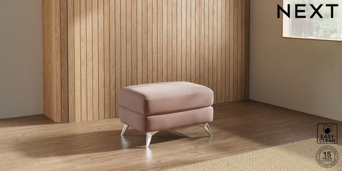 7.3.1 Buy Parker Footstool Plush Velvet Easy Clean Mid Natural High Metal - Chrome from the Next UK online shop Click here to use our accessible website