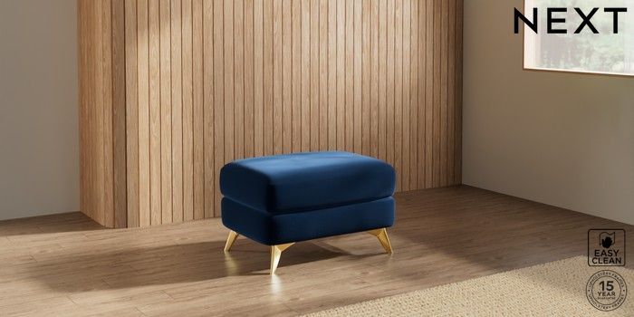 7.3.1 Buy Parker Footstool Plush Velvet Easy Clean Navy Blue High Metal - Brass from the Next UK online shop Click here to use our accessible website