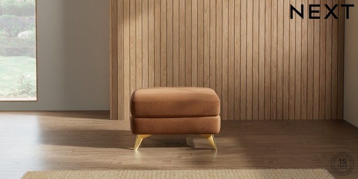 7.2.5 Buy Parker Footstool Ripple Chenille Mid Rust Brown High Metal - Brass from the Next UK online shop Click here to use our accessible website
