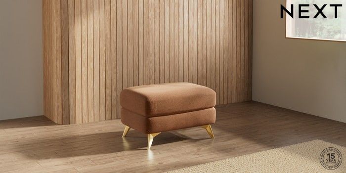 7.2.10 Buy Parker Footstool Ripple Chenille Mid Rust Brown High Metal - Brass from the Next UK online shop Click here to use our accessible website
