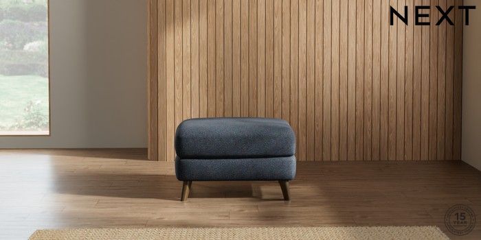 7.2.5 Buy Parker Footstool Tweedy Chenille Navy Blue Low Retro Tapered - Mid from the Next UK online shop Click here to use our accessible website