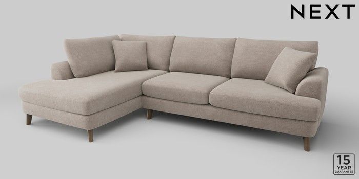6.12.1 Buy Parker Large Corner Chaise - Left Hand Boucle Chenille Light Natural Low Retro Tapered - Mid from the Next UK online shop Click here to use our accessible website