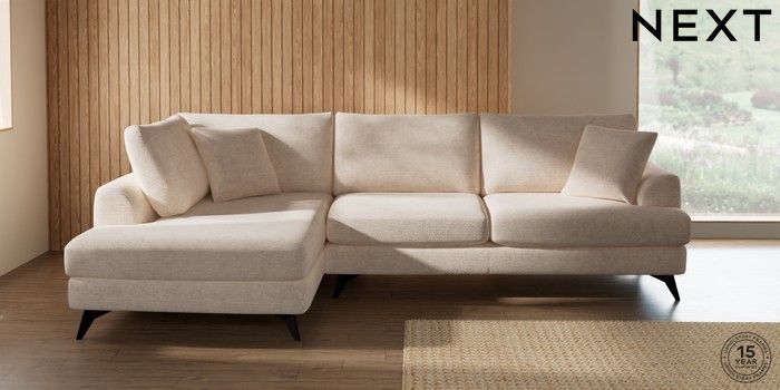 7.3.1 Buy Parker Large Corner Chaise - Left Hand Boucle Chenille Oyster High Metal - Black from the Next UK online shop Click here to use our accessible website