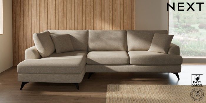 7.3.1 Buy Parker Large Corner Chaise - Left Hand Boucle Weave Easy Clean Dark Natural High Metal - Black from the Next UK online shop Click here to use our accessible website