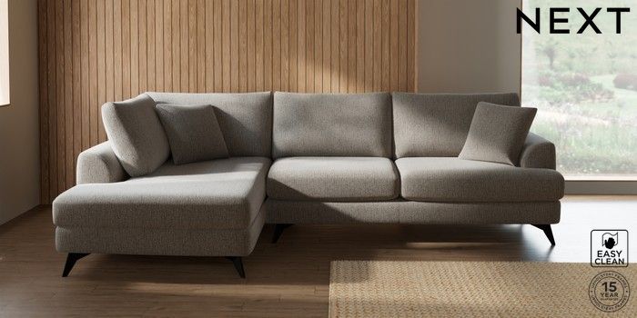 7.3.1 Buy Parker Large Corner Chaise - Left Hand Chunky Boucle Easy Clean Dove High Metal - Black from the Next UK online shop Click here to use our accessible website
