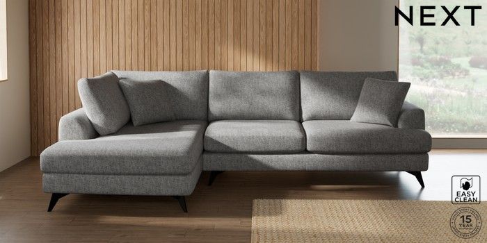 7.2.10 Buy Parker Large Corner Chaise - Left Hand Chunky Boucle Easy Clean Light Grey High Metal - Black from the Next UK online shop Click here to use our accessible website