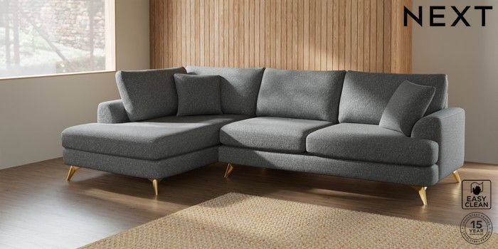 7.2.5 Buy Parker Large Corner Chaise - Left Hand Chunky Boucle Easy Clean Mid Grey High Metal - Brass from the Next UK online shop Click here to use our accessible website