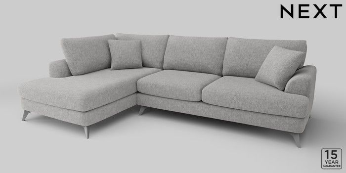 6.12.1 Buy Parker Large Corner Chaise - Left Hand Chunky Chenille Light Grey High Metal - Black from the Next UK online shop Click here to use our accessible website