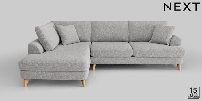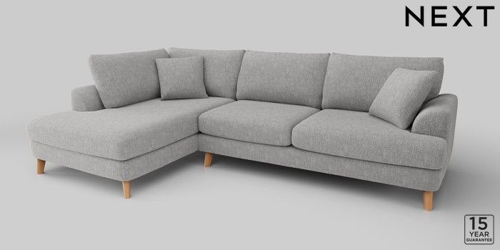 6.12.1 Buy Parker Large Corner Chaise - Left Hand Chunky Chenille Light Grey Low Retro Tapered - Light from the Next UK online shop Click here to use our accessible website