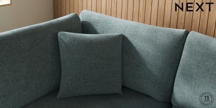 7.3.1 Buy Parker Large Corner Chaise - Left Hand Chunky Chenille Light Teal Green High Metal - Brass from the Next UK online shop Click here to use our accessible website