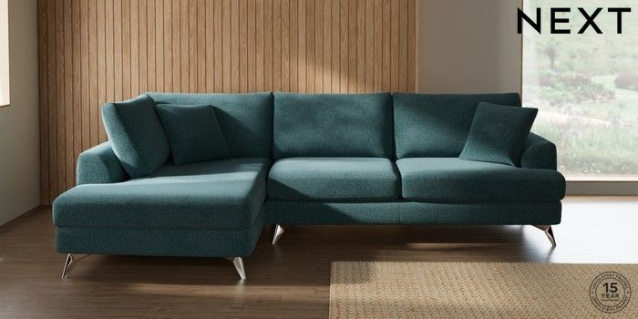 7.3.1 Buy Parker Large Corner Chaise - Left Hand Chunky Chenille Mid Teal Green High Metal - Chrome from the Next UK online shop Click here to use our accessible website
