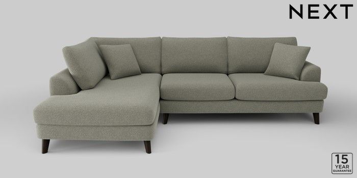 6.12.1 Buy Parker Large Corner Chaise - Left Hand Chunky Marl Light Olive Green Low Retro Tapered - Dark from the Next UK online shop Click here to use our accessible website