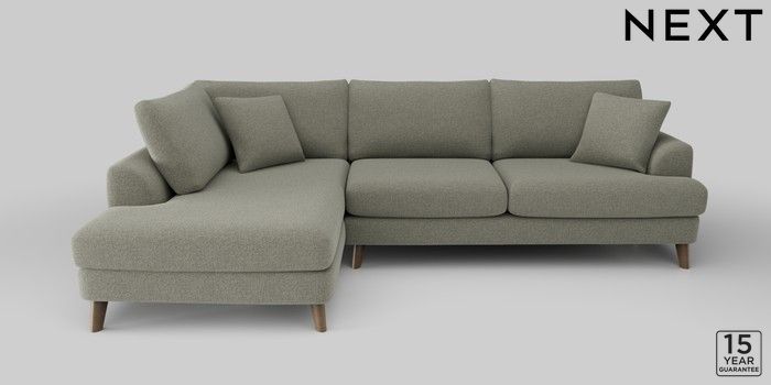 6.12.1 Buy Parker Large Corner Chaise - Left Hand Chunky Marl Light Olive Green Low Retro Tapered - Mid from the Next UK online shop Click here to use our accessible website