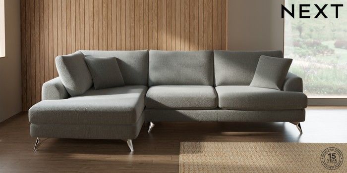 7.2.10 Buy Parker Large Corner Chaise - Left Hand Chunky Texture Dove High Metal - Chrome from the Next UK online shop Click here to use our accessible website