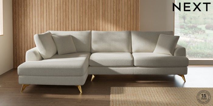 7.2.10 Buy Parker Large Corner Chaise - Left Hand Chunky Texture Oyster High Metal - Brass from the Next UK online shop Click here to use our accessible website