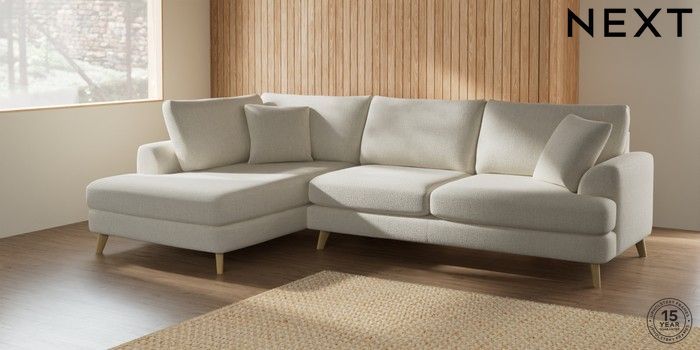 7.2.5 Buy Parker Large Corner Chaise - Left Hand Chunky Texture Oyster Low Retro Tapered - Light from the Next UK online shop Click here to use our accessible website