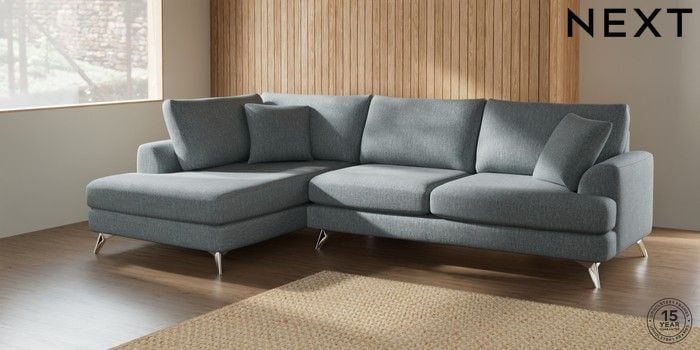 7.2.5 Buy Parker Large Corner Chaise - Left Hand Chunky Weave Mid Blue High Metal - Chrome from the Next UK online shop Click here to use our accessible website