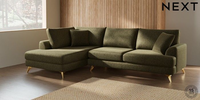 7.2.5 Buy Parker Large Corner Chaise - Left Hand Cotswold Chenille Dark Green High Metal - Brass from the Next UK online shop Click here to use our accessible website