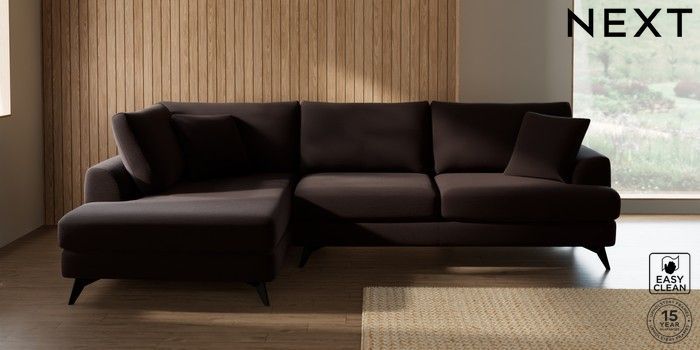 7.3.1 Buy Parker Large Corner Chaise - Left Hand Fine Chenille Easy Clean Chocolate Brown High Metal - Black from the Next UK online shop Click here to use our accessible website