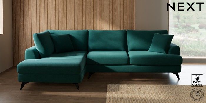 7.3.1 Buy Parker Large Corner Chaise - Left Hand Fine Chenille Easy Clean Dark Juniper Green High Metal - Black from the Next UK online shop Click here to use our accessible website