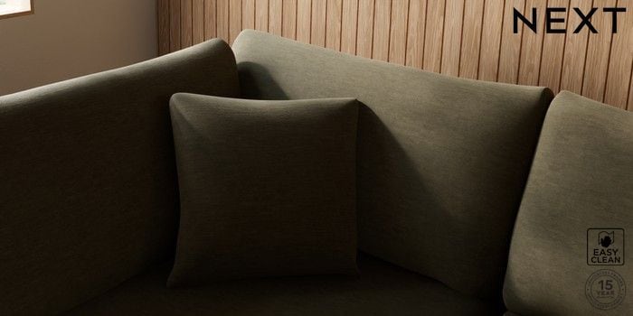 7.3.1 Buy Parker Large Corner Chaise - Left Hand Fine Chenille Easy Clean Dark Moss Green High Metal - Black from the Next UK online shop Click here to use our accessible website