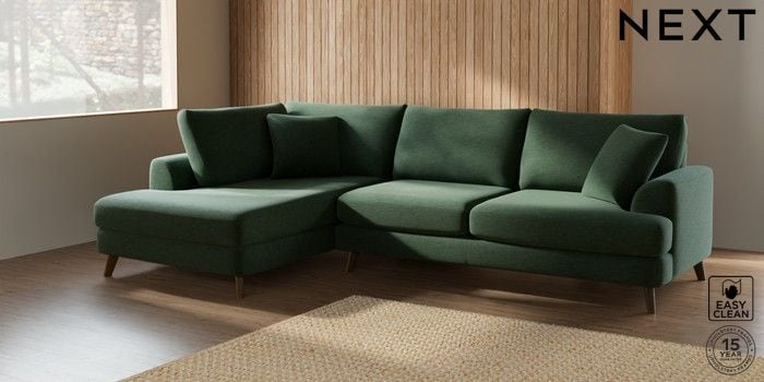 7.2.4 Buy Parker Large Corner Chaise - Left Hand Fine Chenille Easy Clean Mid Khaki Green Low Retro Tapered - Mid from the Next UK online shop Click here to use our accessible website