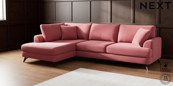 7.2.5 Buy Parker Large Corner Chaise - Left Hand Fine Chenille Easy Clean Mid Pink High Metal - Black from the Next UK online shop Click here to use our accessible website