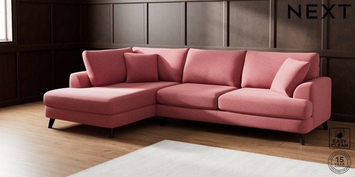 7.2.5 Buy Parker Large Corner Chaise - Left Hand Fine Chenille Easy Clean Mid Pink Low Retro Tapered - Dark from the Next UK online shop Click here to use our accessible website