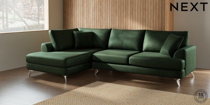 7.2.5 Buy Parker Large Corner Chaise - Left Hand Luxe Chenille Dark Green High Metal - Chrome from the Next UK online shop Click here to use our accessible website