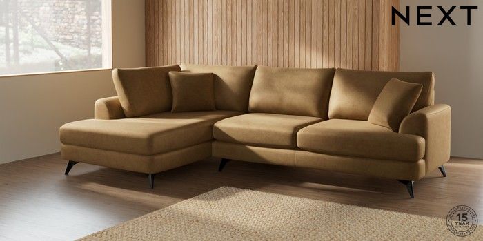 7.0.3 Buy Parker Large Corner Chaise - Left Hand Luxe Chenille Honey Yellow High Metal - Black from the Next UK online shop Click here to use our accessible website