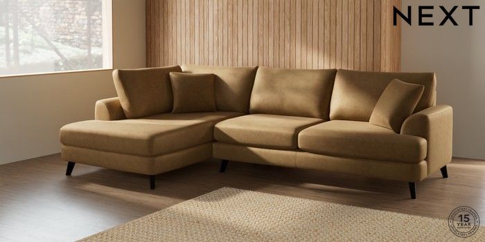 7.0.3 Buy Parker Large Corner Chaise - Left Hand Luxe Chenille Honey Yellow Low Retro Tapered - Dark from the Next UK online shop Click here to use our accessible website