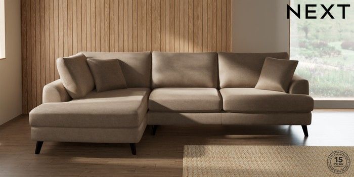 7.3.1 Buy Parker Large Corner Chaise - Left Hand Luxe Chenille Mid Camel Beige Low Retro Tapered - Dark from the Next UK online shop Click here to use our accessible website