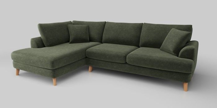 6.12.1 Buy Parker Large Corner Chaise - Left Hand Luxe Chenille Mid Green Low Retro Tapered - Light from the Next UK online shop Click here to use our accessible website