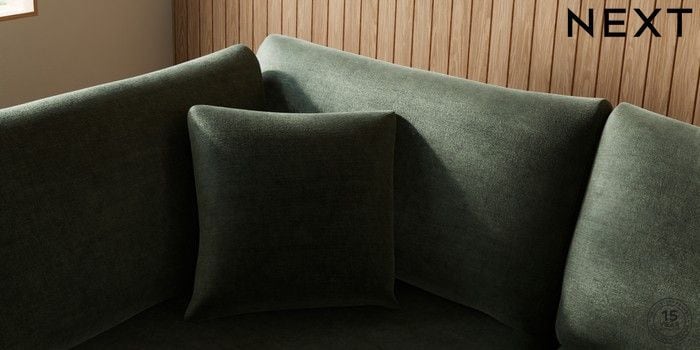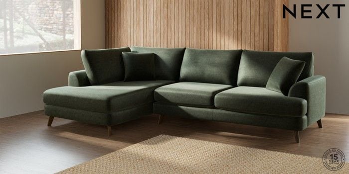 7.0.3 Buy Parker Large Corner Chaise - Left Hand Luxe Chenille Mid Green Low Retro Tapered - Mid from the Next UK online shop Click here to use our accessible website